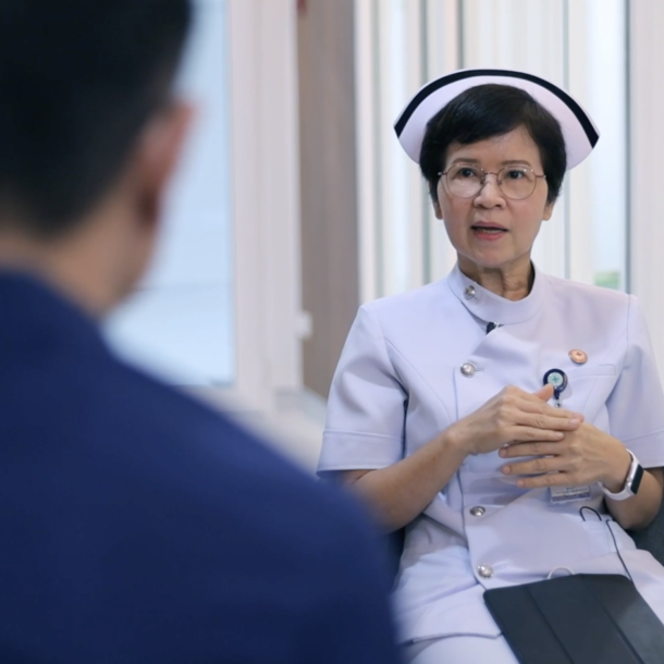 ในตอนที่แล้ว หลังจากที่เราได้ฟังเรื่องราวจุดเริ่มต้นการรับมือโควิด-19 ของบุคลากรทางการแพทย์และ การใช้หัวใจทำงานจากพี่แหวน หรือคุณปริศนา ปทุมอนันต์ ผู้อำนวยการฝ่ายการพยาบาลไปแล้ว